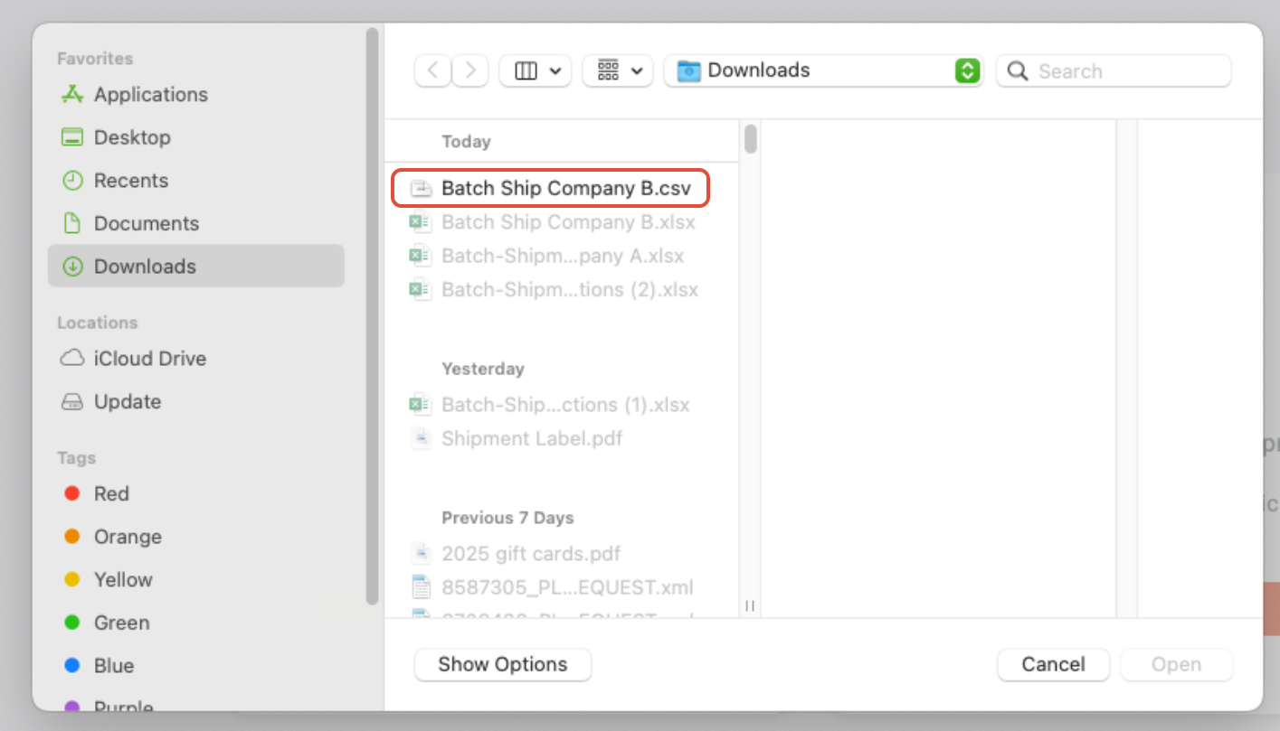 Your account must be activated to use CSV Upload. For details, contact support@shiptime.com or your ShipTime Account Manager.