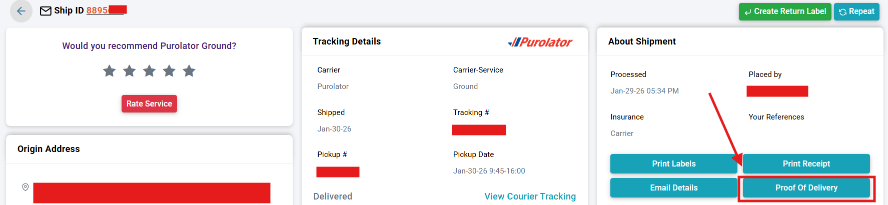 You no longer need to visit individual courier websites to retrieve delivery confirmation. PODs are now accessible directly from History & Tracking under the Manage section of your ShipTime account.