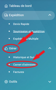 Accédez à votre carnet d'adresses dans la section Gérer dans la barre latérale et sélectionnez Carnet d'adresses.