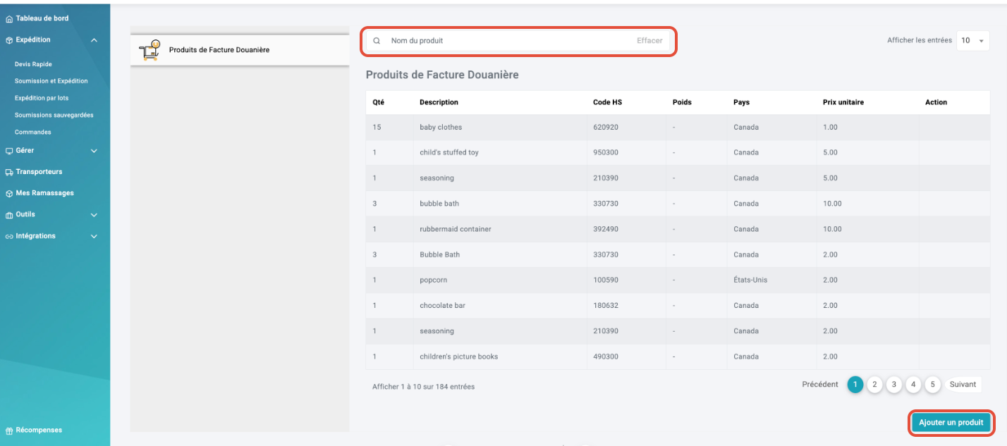 1. Rechercher des produits par nom ou par partie de nom
