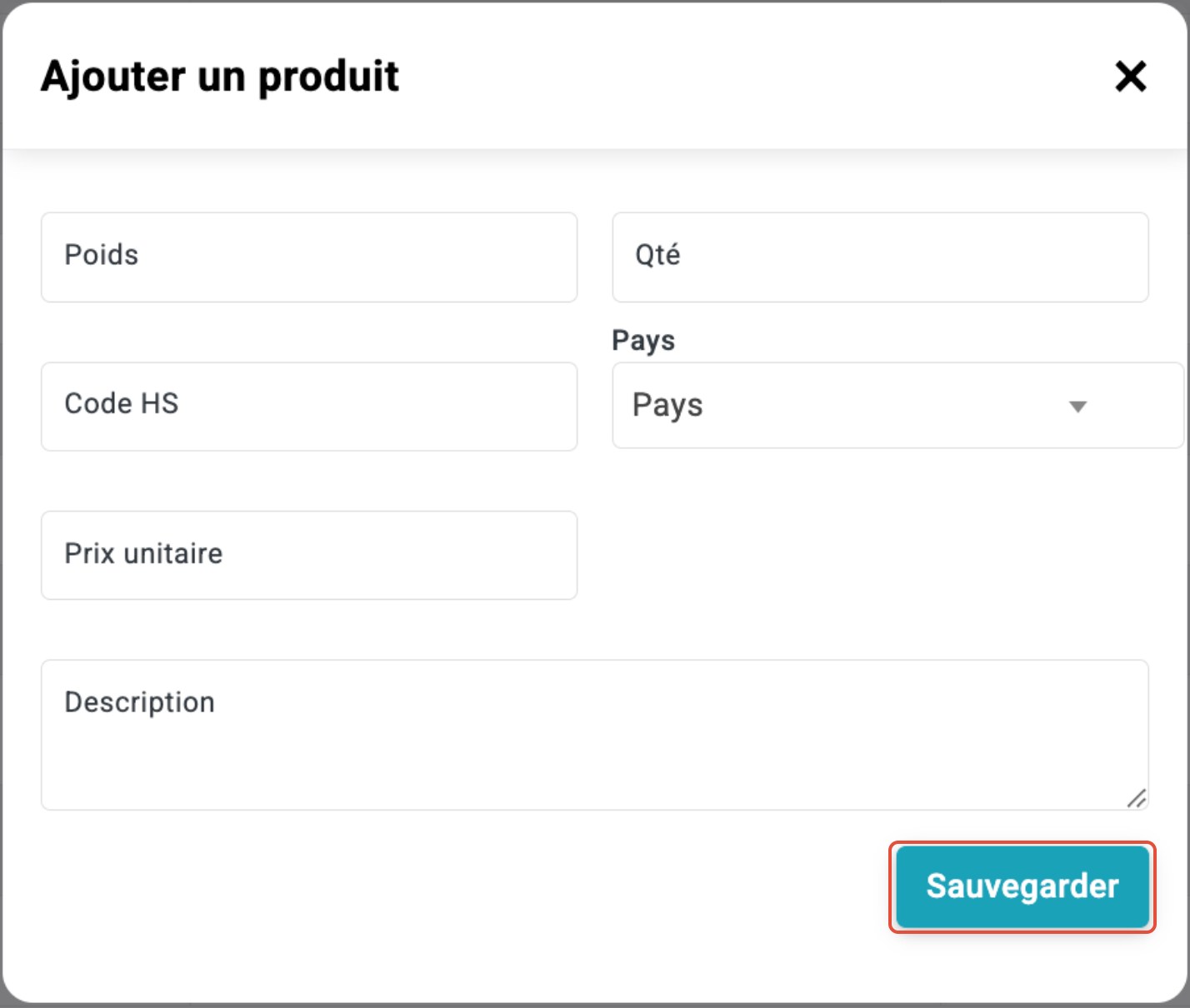 Description - Description brève et claire du produit pour la facture douanière
