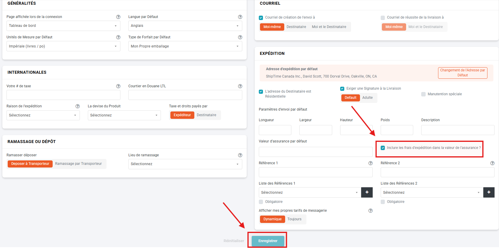 Dans la section « Expédition », cochez la case « Inclure le coût de l’expédition dans la valeur d’assurance ? ». Ensuite, cliquez sur « Enregistrer ».