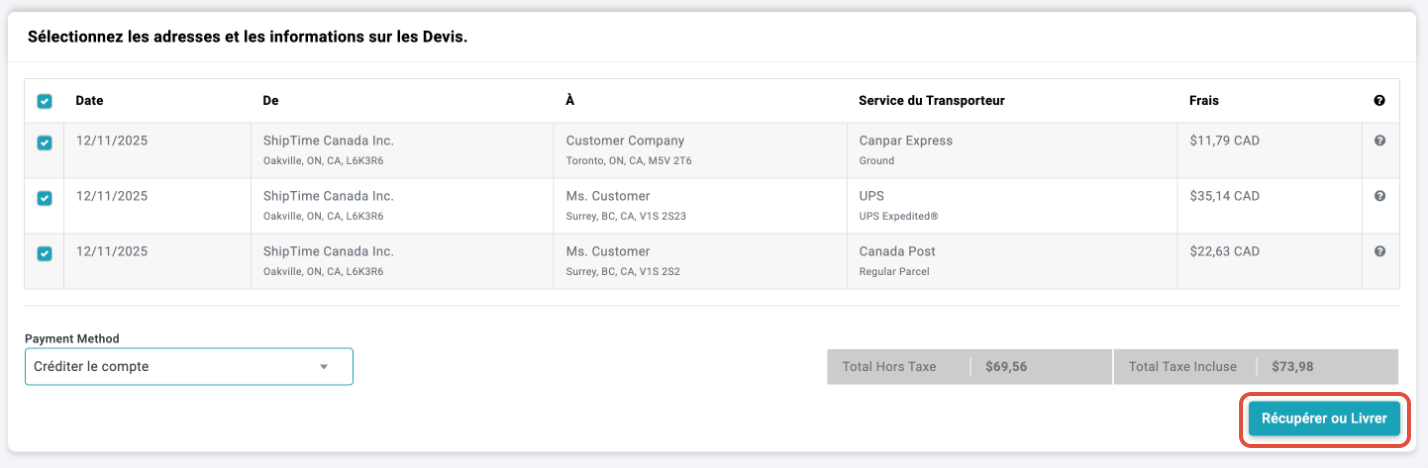 Étape 5 : Vérifiez les devis des transporteurs