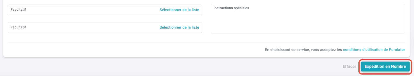 - Les expéditions groupées sont disponibles uniquement pour les envois nationaux au Canada.