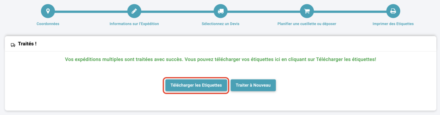 Vos étiquettes seront générées et prêtes à être téléchargées dans un seul fichier pour faciliter l'impression. Cliquez sur Télécharger les étiquettes