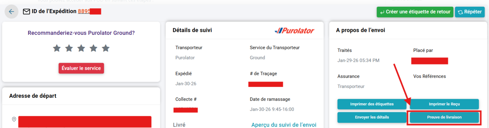 - Téléchargez ou consultez la preuve de livraison (POD) directement à partir du dossier d'expédition.